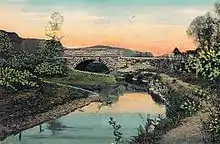 ![]() The stone arch after flooding in 2007 washed away the rest of the bridge | |