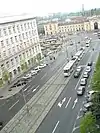 Pančevo Bridge (Панчевачки мост) replaced in 1946 the former Bridge of King Peter II, which was built in 1935 and completely destroyed in 1944. It is a combined road/railway bridge. Rebuilding began in 1945, upstream from the remnants of the destroyed supporting piers. Plans were drawn up by the Soviet engineers of the Red Army's technical troops. Soviet leader Joseph Stalin's orders were that they should build a provisory crossing, but Yugoslav prime minister Josip Broz Tito convinced him that a proper bridge should be built. On 7 November 1946, the first train passed over the new bridge and regular road traffic started three weeks later, on 29 November. Originally, it was named the Bridge of the Red Army (Most Crvene Armije).[35] It was damaged in the explosion of the Russian tanker ships convoy in 1963.[36] Not counting the Đerdap dams on the Romanian border, Pančevo Bridge was the only bridge over the Danube in Serbia that was not destroyed by NATO forces during the bombing of Serbia in 1999.[37] Until the opening of the Pupin Bridge in 2015, it was the only Belgrade's bridge over the Danube.