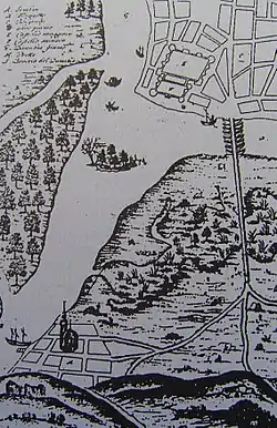 The chronicles mention no less than 10 pontoon bridges on the location of the modern Branko's Bridge - 5 Austrian and 5 Ottoman.[4]