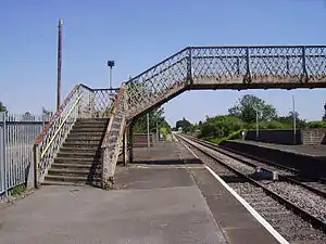 Brigg railway station serves the town of Brigg in North Lincolnshire, England. It was built by the Great Grimsby and Sheffield Junction Railway (GG&SJR) and opened on 1 November 1848.[1] The GG&SJR subsequently became part of the Manchester, Sheffield and Lincolnshire Railway main line between Grimsby and Manchester Piccadilly. It is managed by Northern Trains, who also operate all passenger trains serving it. The station is unstaffed and the only buildings are the bus shelters standing on the platforms now for cover. In 2016, the footbridge was replaced, with the 1880s structure acquired by the Wensleydale Railway and installed at Leyburn.[2][3][4]