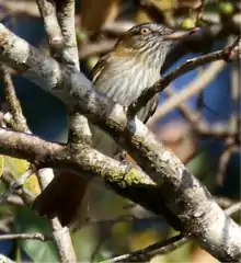 Central American birds have slightly different song structures and also tend towards lighter ochre plumage independent of Gloger's Rule; they are sometimes separated as flammulated attila (Attila flammulatus) . Their characteristic song given at dawn has been analyzed in detail: it has a very variable number of weerys which may become weery'os, and often ends in a woo-whit; a finite state machine has been developed to simulate this structure.[2] However, due to the highly variable songs more data is required before the technically plausible split can be accepted; the AOU has so far refrained from formally acknowledging it.