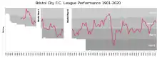 Bristol City would then go on to stay in Division 2 until three years after the First World War had ended, and in that time they reached the semi-finals of the 1919–20 FA Cup before being beaten 2–1 by Huddersfield Town and finished third in the Second Division in the 1920–21 season.[5][6] However, in the next season they were relegated to the Third Division South.[7]