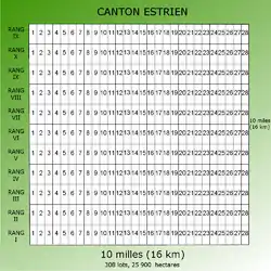 In 1843, the Company began focus its efforts on selling land to the local French-Canadian population,[29][lower-alpha 14] disposing it on new terms, consisting of no down payment, interest payments only for the first ten years, with the principal then being payable in four equal annual instalments.[31] In the beginning, such obligations could be settled by payment in kind.[32]