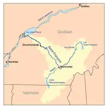 - known as the St. Francis Territory, situated between the upper Saint-François River and Lake Mégantic[9]