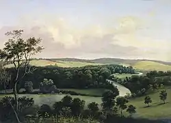 The first named confrontation of the Black Hawk War occurred on 14 May 1832 and resulted in an unexpected victory for Black Hawk's band of Sauk and Fox warriors over the disorganized militia under the command of Isaiah Stillman.[14] Soon after the Battle of Stillman's Run, at present-day Stillman Valley, the exaggerated claim that 2,000 "bloodthirsty warriors ... sweeping all northern Illinois with the bosom of destruction" sent shock waves of terror through the region.[15] After this initial skirmish, Black Hawk led many of the civilians in his band to the Michigan Territory.[15] On 19 May, the militia traveled up the Rock River trailing and searching for Black Hawk and his band.[15] Several small skirmishes and massacres ensued over the next month in northern Illinois and present-day southern Wisconsin before the militia was able to regain public confidence in battles at Horseshoe Bend and Waddams Grove.[16]