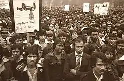 On 4 May 1978, Altab Ali, a 25-year-old Bangladeshi clothing worker, was murdered by three teenage boys as he walked home from work in a racially motivated attack.[29] The murder took place near the corner of Adler Street and Whitechapel Road, by St Mary's Churchyard.[21][26] This murder mobilised the Bangladeshi community in Britain. Demonstrations were held in the area of Brick Lane against the National Front,[30] and groups such as the Bangladesh Youth Movement were formed. On 14 May, over 7,000 people, mostly Bangladeshis, took part in a demonstration against racial violence, marching behind Altab Ali's coffin to Hyde Park.[31][32][33] Some youths formed local gangs and carried out reprisal attacks on their skinhead opponents (see Youth gangs).