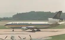 BCal was so pleased with the DC-10's performance that it decided to convert both of the options it had taken when placing the original order for two aircraft during 1976 into firm orders for delivery in autumn 1978 and spring 1979 respectively. However, a subsequent strike at the manufacturer's plant meant that McDonnell Douglas could not honour its delivery schedules.[138] This necessitated the temporary lease of a Boeing 747-100 from Aer Lingus, and the use of BA flightdeck crews to operate the aircraft.[139][140] The aircraft, which wore a slightly modified BCal livery, was operating the Gatwick—Houston schedule during the 1978/79 winter timetable period to cover for the late delivery of the airline's third DC-10.[141][142]