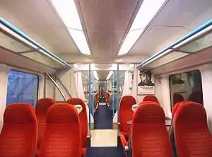 ![]() The interior of Standard Class aboard a Gatwick Express Class 460 EMU | |