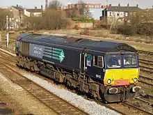 The Class 66 is a type of six-axle diesel-electric freight locomotive developed in part from the Class 59, for use on the railways of the UK. Since its introduction the class has been successful and has been sold to British and other European railway companies. In Continental Europe it is marketed as the EMD Class 66 (JT42CWR).