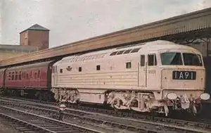 Lion was a private venture to meet a requirement from British Railways for a powerful locomotive of Co-Co wheel arrangement, as a substitute for the earlier 1Co-Co1 locomotives such as the Peak classes. The specifications were revealed by the British Transport Commission (BTC) at a meeting on 15 January 1960.[lower-roman 1] Train heating was to be by both steam and electric train heating (ETH).[1][lower-roman 2] Unlike the earlier Pilot Scheme, the BTC expected that these prototypes would be funded by the makers, rather than bulk orders being placed sight-unseen.[1] For the Type 4, that gave rise to three prototypes: Falcon, DP2 and Lion, eventually leading to the Class 47 and Class 50.