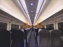 ![]() The interior of Standard Class aboard an LNER refurbished Mark 3 TS vehicle | |