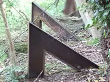 There were two types of socket roadblocks. The first comprised vertical lengths of railway line placed in sockets in the road and was known as hedgehog.[61][62] The second type comprised railway lines or RSJs bent or welded at around a 60° angle, known as hairpins.[63][64] In both cases, prepared sockets about 6 inches (152.40 mm) square were placed in the road, closed by covers when not in use, allowing traffic to pass normally.[65]
