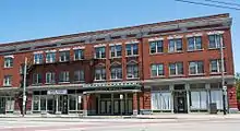 The historic district contains 43 commercial buildings constructed between 1888 and 1930, Our Lady of Lourdes Church, and Our Lady of Lourdes School.[121] Architectural styles represented include Early Commercial, Italianate, Neoclassical, Queen Anne, Renaissance Revival,[121] and Jacobean Revival.[87] Buildings range in height from one to six stories, and all of them front directly onto the sidewalk with no setback.[121] Among the buildings included in the historic district are:[87]