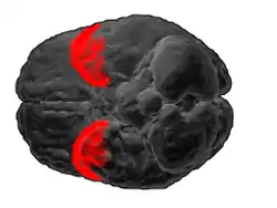 Cytoarchitectonic and chemoarchitectonic studies find that it contains at least seven subareas, one of which, "TG", is unique to humans.[1] The temporal pole is a paralimbic region involved in high level semantic representation and socio-emotional processing. The uncinate fasciculus provides a direct bidirectional path to the orbitofrontal cortex, allowing mnemonic representations stored in the temporal pole to bias decision making in the frontal lobe. The temporal pole appears to be a convergence zone where concepts (also known as semantic memories) that are stored in the ventral anterior temporal lobe are imbued with emotional significance and personal meaning.[2] In addition, concepts of individual people, abstracted away from the perceptual representations, are stored in a “face patch” in the temporal pole. This face patch is found in both non-human primates and humans.[3] This relates to early work showing that damage to the temporal pole can cause an amnestic prosopagnosia in which knowledge of familiar people is lost.[3]