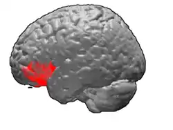 BA47 is thought to be related to the recognition of emotions. The emotions thought to be recognized by BA47 are fear, disgust, and anger. In a study conducted by R. Sprengelmeyer, M. Rausch, U.T. Eysel, and H. Pruzentek this hypothesis was tested be using an fMRI experiment on six healthy individuals with no prior neurological problems.[11] The individuals were shown 8 faces showing the emotions of fear, disgust, anger, or neutral. The fMRI image was taken after the subjects were shown the face for 3 seconds. BA 47 showed increased activity when the subject was shown the emotions of fear, disgust, and anger.