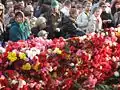Flowers at the old location of the monument 9 May 2007 on the background there is a tent of the excavation site