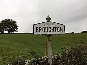 The main west-coast road, the A595, used to pass through Broughton until the road along Duddon Mosses through Foxfield was designated as the A595.[3] The stretch of road through Broughton has been designated the number C5009, although A595 can still be seen on older road signage.