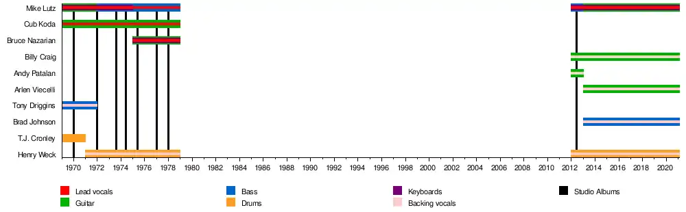 - Mike Lutz (1969–1979, 2012–present) - guitar, lead vocals, bass, keyboards