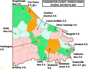 In April 2014, the Pennsylvania Department of Education released a report identifying that three Brownsville Area School District schools were among the lowest achieving schools for reading and mathematics in the state.[13] Central Elementary School, Brownsville Area Middle School and Brownsville Area High School were all on the list. The high school has been on the list each year since 2011–12. The Middle School and Central Elementary School were both on and off the list over the past 5 years. Parents and students may be eligible for scholarships to transfer to another public or nonpublic school through the state's Opportunity Scholarship Tax Credit Program passed in June 2012.[14] The scholarships are limited to those students whose family's income is less than $60,000 annually, with another $12,000 allowed per dependent. Maximum scholarship award is $8,500, with special education students receiving up to $15,000 for a year's tuition. Parents pay any difference between the scholarship amount and the receiving school's tuition rate. Students may seek admission to neighboring public school districts. Each year the PDE publishes the tuition rate for each individual public school district.[15] Fifty-three public schools in Allegheny County are among the lowest-achieving schools in 2011. According to the report, parents in 414 public schools (74 school districts) were offered access to these scholarships. Funding for the scholarships comes from donations by businesses which receive a state business tax credit for donating.