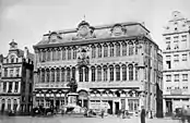 Brussels' Town Hall was erected in stages between 1401 and 1455 on the south side of the Grand Place, and made the square the seat of municipal power. To counter this, from 1504 to 1536, the Duke of Brabant ordered the construction of a large Flamboyant edifice across from the city hall as a symbol of ducal power.[4] It was built on the site of the first cloth and bread markets, which were no longer in use, and it became known as the King's House (Middle Dutch: 's Conincxhuys), although no king has ever lived there. It is currently known as the Maison du Roi ("King's House") in French, though in Dutch it continues to be called the Broodhuis ("Bread hall"), after the market whose place it took.
