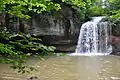 Schwarz river in Bubikon, Schwarztöbeli waterfall in the background
