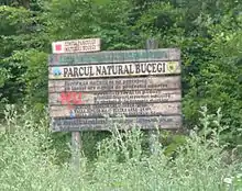 Protected areas included in the park: Abruptul Mălăiești - Bucșoiu - Gaura (1.634 ha) and Locul fosilifer Vama Strunga in Brașov County;[7] Cocora Cave and Cheile Urșilor (307 ha) in Dâmbovița County;[8] and Abruptul Prahovean Bucegi (3.478 ha) and Colții lui Barbeș Mountains (1.513 ha) in Prahova County.