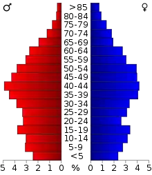 In the county, the population was spread out, with 21.40% under the age of 18, 8.50% from 18 to 24, 31.20% from 25 to 44, 27.50% from 45 to 64, and 11.50% who were 65 years of age or older. The median age was 39 years. For every 100 females there were 102.90 males. For every 100 females age 18 and over, there were 102.30 males.