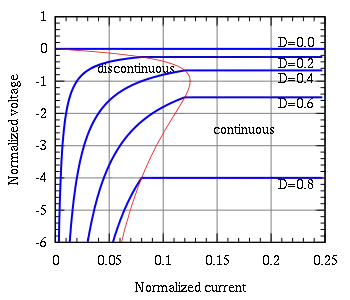 - the current at the limit between continuous and discontinuous mode is . Therefore the locus of the limit between continuous and discontinuous modes is given by .