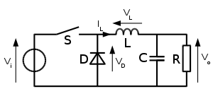 A buck converter (step-down converter) is a DC-to-DC power converter which steps down voltage (while stepping up current) from its input (supply) to its output (load). It is a class of switched-mode power supply (SMPS) typically containing at least two semiconductors (a diode and a transistor, although modern buck converters frequently replace the diode with a second transistor used for synchronous rectification) and at least one energy storage element, a capacitor, inductor, or the two in combination. To reduce voltage ripple, filters made of capacitors (sometimes in combination with inductors) are normally added to such a converter's output (load-side filter) and input (supply-side filter).[1]
