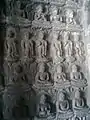 Multiple depictions of Buddha on a wall at Ajanta Caves