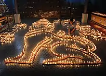Bayinnaung also promoted mass ordinations into the Sinhala Sangha at the Kalyani Ordination Hall in the name of purifying the religion.[76] He also prohibited all human and animal sacrifices throughout the kingdom. In particular, he forbade the Shan practice of killing the slaves and animals belonging to a saopha at his funeral.[77] He also sent Burmese Theravada monks to preach in the Shan realm.[78] During his reign, there were great scholars such as Saddhammalamkara, Dhammabuddha and Ananda (known for his commentary on the Dhammasanghani's Abhidhammamatika).[79]