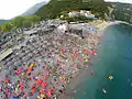 Budva municipality is located on the Budva Riviera region, 35 km (22 mi) long strip of the Adriatic coast surrounding the town of Budva in southwestern Montenegro. It is part of the Montenegrin Littoral geographical region. It is located roughly along the middle of the Montenegrin coast, and is a center for Montenegrin beach tourism. There are 12.5 km (7.8 mi) of beaches which lie along the Budva Riviera. Tourism is the main driver of the economy of Budva. It is a significant tourist destination on the eastern Adriatic, and by far the most popular destination in Montenegro. During the 2013, Budva recorded 668,931 tourist visits, and 4,468,913 overnight stays, thus accounting for 44,8% of tourist visits to Montenegro, and 47,5% of its overnight stays.[2] The best known and most popular settlements along the Budva municipality are municipal seat Budva, Bečići, Miločer, Rafailovići, Sveti Stefan and Petrovac.