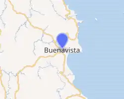 The municipality of Buenavista is located in the eastern part of Quezon Province at the base of the Bondoc Peninsula. It is bounded on the northern part by Guinayangan, on the south by the town of San Narciso, on the western part by Lopez and Catanauan, and on the east by the Ragay Gulf facing Bicol Region. The municipality is about 226 kilometres (140 mi) southeast of Metro Manila and about 114 kilometres (71 mi) southeast of provincial capital, the city of Lucena.