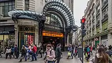The construction of Corrientes and Nueve de Julio Avenues in the 1930s further modernized San Nicolás, which had hitherto been limited in its development by its colonial grid of narrow streets. Florida Street, most of which is in San Nicolás, is the city's best-known pedestrianized street.[6] Its most discernible landmark is the Galerías Pacífico shopping arcade.[7]