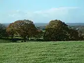The civil parish has a total area of 2,981 acres (1,206 ha).[11] The terrain is gently undulating, with a high point of 145 metres at SJ706414 near the Shropshire border, south of College Fields. The area is predominantly rural, with the major land use being agricultural.[12][13] Cheese remains a product of the parish.[6] Several small areas of woodland are located within the civil parish, including Brick-kiln Wood, Brook Plantation, Fox Covert, Long Wood and The Ox Leasow. Birchall Brook forms part of the north-eastern parish boundary; several unnamed brooks run through the parish and there are many scattered small meres and ponds.[12][13]