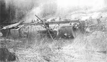 When the south abutment of the East Salamanca yard's bridge across the Great Valley Creek failed on 20 September 1912, half of the bridge dropped, and so did the train on it. (See text below.)