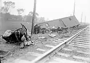 Train crews are forever at the mercy of what others do. In February 1927, a Bradford yard employee left a switch in the wrong position, derailing a passenger train. The fireman was injured but survived; the engineer, who had worked for the line for forty-five years, was close to retirement, and had a reputation as a meticulous and careful worker, was crushed, scalded, and dismembered when the locomotive overturned.[34] (See photo above)