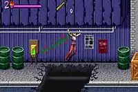 Wrath of the Darkhul King is a side-scrolling platform game with beat 'em up elements.[1][2] The game is divided into 16 linear levels in environments that include a cemetery, an abandoned hospital, and a college campus.[2][3] The levels include obstacles, such as pendulums, spikes, falling rocks, and unstable platforms.[1][2] The player, as Buffy Summers, completes levels by locating the correct switch to open a gate or turn off hazards, such as a steam pipe.[2] Buffy can progress through levels by swimming and by using ladders, ropes, and metal bars.[1][2][4] In some areas, she can rescue people who are all portrayed as men in red shirts.[5] When the game's difficulty levels are adjusted to a more challenging setting, the entrances and puzzle solutions are changed.[1]