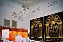 Around 1620, the first synagogue was constructed at Bukhara city. This was done in contravention of the law prescribed to Caliph Omar who forbade the construction of new non-Muslim places of worship including synagogues as well as forbade the destruction of those that existed in the pre-Islamic period. There was a case when Caliph Umar had ordered the destruction of a mosque, which was built illegally on Jewish land.[12][13][14] Before the construction of the first synagogue, Jews had shared a place in a mosque with Muslims. This mosque was called the Magoki Attoron (the "Mosque in pit"). Some say that Jews and Muslims worshipped alongside each other in the same place at the same time. Other sources insist that Jews worshipped after Muslims.[15] The construction of the first Bukhara synagogue was credited to two people: Nodir Divan-Begi, an important grandee, and an anonymous widow, who reportedly outwitted an official.