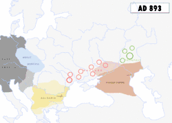 Although marriage of the heir to the Bulgarian throne Gavril Radomir to the daughter of the Hungarian ruler had established friendly relation between the two strongest states in the Danube area, the relationship deteriorated after Géza's death. The Bulgarians supported Gyula and Koppány as rulers instead of Géza's son Stephen I. As a result of the conflict, the marriage between Gavril Radomir and the Hungarian princess was dissolved. The Hungarians then attacked Ahtum, who had directly backed the pretenders for the Hungarian crown. Stephen I convinced Hanadin, Ahtum's right-hand man, to help in the attack. When the conspiracy was uncovered Hanadin fled and joined the Hungarian forces.[5] At the same time, a strong Byzantine army besieged Vidin, Ahtum's seat. Although many soldiers were required to participate in the defense of the town, Ahtum was occupied with the war to the north. After several months he died in battle when his troops were defeated by the Hungarians.[6] As a result of the war, Bulgarian influence to the northwest of the Danube diminished.