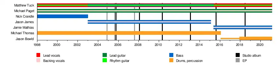 - Matthew "Matt" Tuck – lead vocals, rhythm guitar (1998–present); bass (2003–2015)