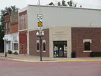 Burlingame was originally established as Council City and was an stop on the Santa Fe Trail. The Council City post office was opened on April 30, 1855.[9] The wide brick main street, Santa Fe Avenue, was built wide enough for an oxen team to be able to make a U-turn. The city and post office name was changed from Council City to Burlingame on January 30, 1858, in honor of Anson Burlingame.[10]