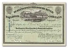 The Burlington and Missouri River Railroad (B&MR) or sometimes (B&M) was an American railroad company incorporated in Iowa in 1852, with headquarters in Omaha, Nebraska. It was developed to build a railroad across the state of Iowa and began operations in 1856. It was acquired by the Chicago, Burlington and Quincy Railroad in 1872, and kept serving as its subsidiary.