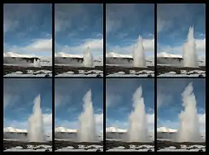 Burst mode, also called continuous shooting mode, sports mode, continuous high speed mode, or Burst shot, is a shooting mode in still cameras. In burst mode, the photographer captures several photos in quick succession by either pressing the shutter button or holding it down.[1] This is used mainly when the subject is in successive motion, such as sports photography. The photographer can then select the best image of the group or arrange them in a sequence to study the transitions in detail.