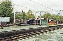 Platforms 3 and 4 are by far the least used, since these fast main line tracks are normally used by trains not stopping at Bushey. Platform 3 is accessed via the stairway for platform 2 and is fitted with a remotely operated gate to prevent access when the platform is not in operation. Platforms 3 and 4 were brought back into use for the December 2011 timetable, which marks some services as "front four coaches only for Bushey", allowing an improved late evening and weekend connection with London.[6] Prior to this reinstatement, engineering works frequently meant that late-evening London Midland services could not stop at Bushey as a northbound platform was not available. It was overgrown after having fallen into disuse many years earlier and boarded off following its partial destruction during the crash of February 1980: the locomotive and leading two coaches passed through the station before coming to a stand having destroyed the platform face.[7][8][9]