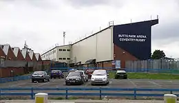 Butts Park Arena is a multi-use sports stadium in Spon End, Coventry, England. Its main use is as a rugby stadium (both Union and League). It is the home ground for Coventry R.F.C. (since its opening) and Coventry Bears (who moved there for the start of the 2004–05 season). It was formerly the home ground of the Coventry Jets, an American football team. From the 2017–18 season, the stadium is also the home of Coventry United, a non league football club.