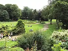Buxton Pavilion Gardens is a Victorian landscaped public park in the spa town of Buxton in Derbyshire. The River Wye flows through the gardens, which are a Grade II* listed public park of Special Historic Interest.[1]