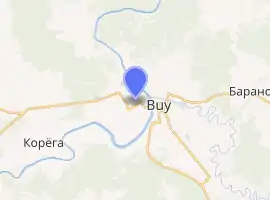 Buy (Russian: Буй) is a town in Kostroma Oblast, Russia, which stands on the Kostroma River. Population: 25,763 (2010 Census);[2] 27,392 (2002 Census);[7] 32,701 (1989 Census).[8]