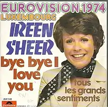 "Bye Bye I Love You" was the Luxembourgish entry in the Eurovision Song Contest 1974, performed (despite the English of the title, although the title phrase is in that language) in French by German-British singer Ireen Sheer. The song is notable in the history of the Contest; it was the first entry composed by Eurovision veteran Ralph Siegel, who would go on write 19 ESC entries throughout the 1970s, 1980s, 1990s and 2000s - 14 for Germany including 1982 winner "Ein bißchen Frieden", 3 for Luxembourg, 1 for Switzerland, Montenegro in 2009, The Social Network Song for San Marino in 2012 and most recently "Crisalide (Vola)" for San Marino in 2013.