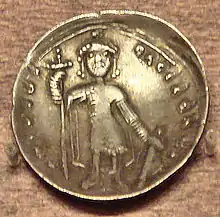 Constantine Doukas gained influence after he married, as his second wife, Eudokia Makrembolitissa, a niece of Patriarch Michael Keroularios.[7] In 1057, Constantine supported the usurpation of Isaac I Komnenos, gradually siding with the court bureaucracy against the new emperor's reforms.[7] In spite of this tacit opposition, Constantine was chosen as successor by the ailing Isaac in November 1059, under the influence of Michael Psellos.[8] Isaac abdicated, and on November 24, 1059, Constantine X Doukas was crowned emperor.[9]